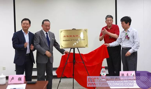 从左至右(时任):乐动在线控股总裁王济武、清华大学教授卢强院士、中国可再生能源学会副理事长朱俊生、国家能源局新能源和可再生能源司副司长梁志鹏为清华阳光研究院成立揭牌