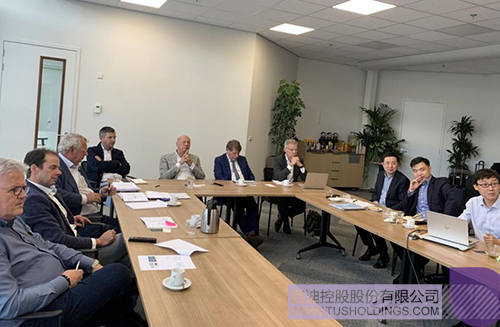 胡波与荷兰韦斯特兰市前市长Sjaak Van Der Tak,世界园艺中心董事长、荷兰花卉集团创始人Jaap Van Duijn及荷兰本地科技园开发团队共同讨论中荷科技园建设