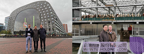 当地时间10月4日下午,在世界园艺中心国际合作总监Mark Zwinkels的陪同下,胡波一行考察了素有“全球最美菜市场”之称的荷兰鹿特丹缤纷菜市场(Markthal)和全球首个海上漂浮农场(Floating Farm),会见了荷兰鹿特丹缤纷菜市场(Markthal)的项目总策划人Marcel Kroes, 海上漂浮农场(Floating Farm)创始人Peter Van Wingerden,达成了项目投资和引入中国市场的合作意向。荷兰鹿特丹缤纷菜市场(Markthal)是基于鹿特丹市中心旧市集的城市更新改造项目,已成为集餐饮、购物、娱乐、住宿功能为一体的新型商业综合体。海上漂浮农场(Floating Farm)是生产加工一体化的农业科技项目,位于紧邻市中心的海边,优越的地理位置不仅可以为城市居民带来新鲜、健康的食物,而且大大缩短了运输距离,减少环境污染。