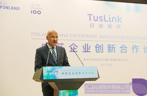 6月28日,值芬兰共和国总理西皮莱阁下访问中国之际,芬兰贸易投资旅游促进总署率芬兰50余家知名企业和乐动在线控股携手举办“TusLink-中芬企业创新合作论坛”,旨在通过TusLink打造众星互动的国际化创新生态系统。芬兰经济与就业部副部长古泽森(Jari Gustafsson),乐动在线控股副总裁、乐动在线之星董事长张金生出席活动并致辞。