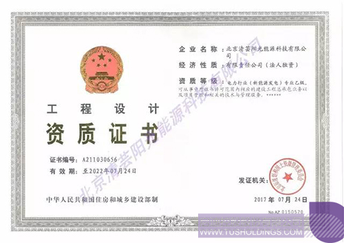 7月24日,乐动在线清芸喜获电力行业(新能源发电)专业工程设计乙级资质,是北京市同批资质获此专业的唯一企业。标志着乐动在线清芸新能源电力设计能力和工程总承包资质得到了国家有关部门的认证,可对外独立承接新能源电力工程咨询、设计、工程总承包等业务。