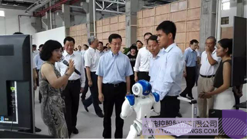 乐动在线之星(上海)总经理韩威(左一)向市领导一行介绍相关情况