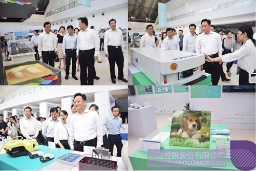 会前,与会领导一行还前往G60科创走廊双创成果展参观考察了最新的科技创新成果、先进的双创事迹、高校师生的双创成效等。与会领导分别驻足观摩了上海莰拓教育科技有限公司、上海彩丞新材料科技有限公司、铽罗(上海)机器人科技有限公司、悠迅动力科技(上海)有限公司、上海岐华医疗科技有限公司等乐动在线漕河泾(中山)科技园入驻区企业的产品展示,对企业产品予以高度认可。