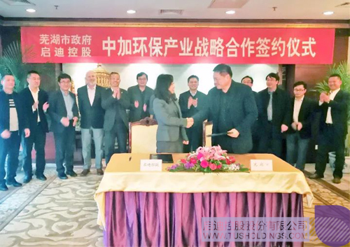 11月23日,袁桅总裁在清华科技园会见了来访的芜湖市长贺懋燮、常务副市长冯克金一行,双方就全面合作推动环保产业发展交换了意见并签署中加环保产业战略合作协议。协议签署后,双方成立了专项工作领导小组和项目工作组,建立了全面对接工作机制。