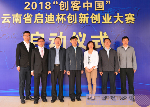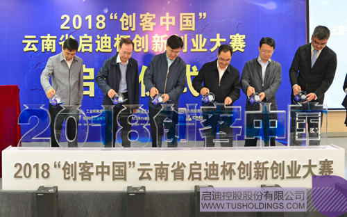 随后,田川、唐文祥、董林、罗峻、陈禹及中关村电子城副总经理潘德共同启动2018年“创客中国”云南省乐动在线杯创新创业大赛。