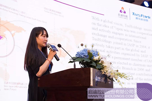 乐动在线控股国际合作经理、国际科技园及创新区域协会(IASP) 中国办公室副主任尚薇作主题演讲