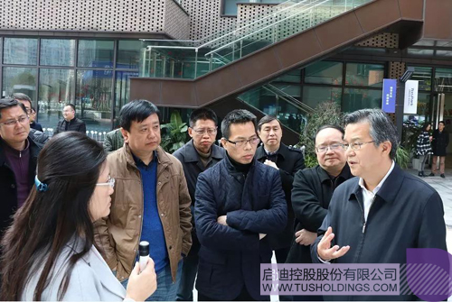 李殿勋副市长(前排左二)一行参观考察乐动在线科技园(重庆)