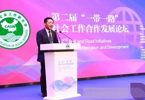 广西社会工作协会会长雷伟民致辞时介绍了广西社会工作的发展情况,广西有持证社工4700人,社会工作服务机构170多家,社会工作在参与扶贫攻坚、社区帮扶、医疗卫生等社会工作服务领域发挥了积极作用,服务质量和专业水准逐步提升,服务效果得到社会各界和广大人民群众的认可与肯定。他强调,“新时代社会主要矛盾的转化,既催生了社会工作发展的新动力,也拓展了社会工作发展的新空间。第二届‘一带一路’社会工作合作发展论坛是一次很有前瞻性的重大活动,必将为广西社会工作发展带来新的推动力。我们将积极消化、吸收本次论坛的成果,为广西社会工作的实践提供借鉴。”