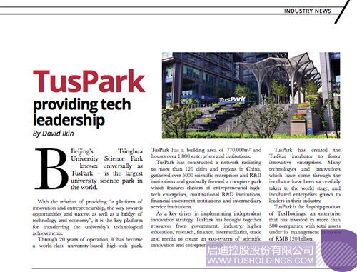 澳大利亚TechInvest杂志:TusPark providing tech leadership打印