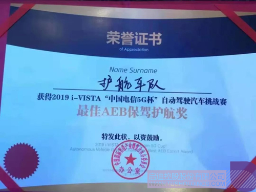 重庆乐动在线参展企业河南护航在 i-VISTA"中国5G电信杯"自动驾驶汽车挑战赛中荣获“最佳AEB保驾护航奖”