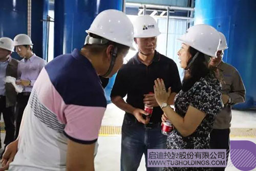 袁桅总裁(前排右一)介绍膜法镁锂分离项目