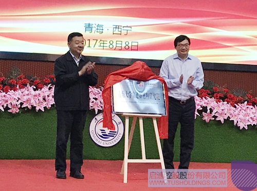 青海省委常委、宣传部长张西明与张金生副总裁(右)为青海大学乐动在线新材料研究院成立揭牌