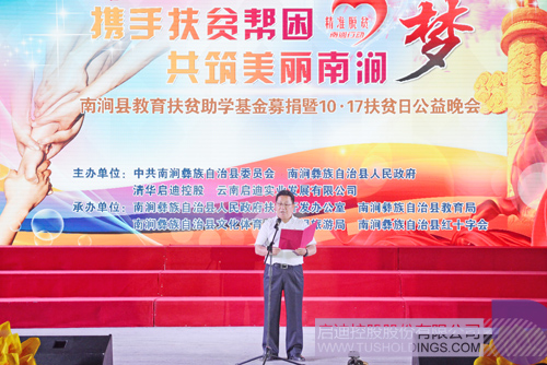 10月16日晚,以“携手扶贫帮困,共筑美丽南涧梦”为主题的南涧县教育扶贫助学基金募捐暨10·17扶贫日公益晚会成功举办。大理州扶贫办主任李德琦,吉向阳、王绍基、沈文荣、黄希里,南涧县委副书记茶向华、武绍华,清华大学云南校友会秘书长万林,清华校友、中国建筑技术集团有限公司副总建筑师吕絮飞,清华大学挂职干部、南涧县政府党组成员金峰,南涧县西山村委会第一书记沈正波等出席晚会,陈禹作为乐动在线代表受邀参加。