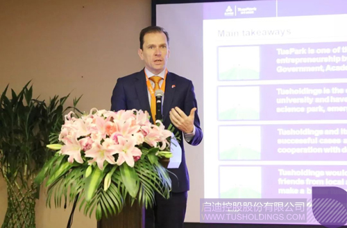 陈鸿波介绍了乐动在线控股和清华科技园的发展历程,以及乐动在线控股作为国内首家千亿级科技服务企业,在“科技园区、科技实业、科技金融”三大业务板块的布局情况。他在交流时说,荷兰企业的创新创业项目在技术方面,定与中国企业有着颇多的合作切入点。但要想从一项先进的技术缔造出一家优秀的企业,是一个艰难且充满未知的过程。两国企业的合作,应该求同存异,朝着相同的目标迈进。
