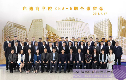王济武董事长、李志强书记、王书贵常务副总裁、蔡晓卫常务副总裁、赵东副总裁与乐动在线商学院EBA-6期学员合影