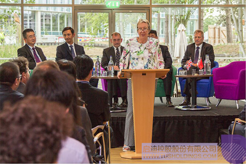 英女王特使Julie Spence在开幕仪式致闭幕辞中对剑桥乐动在线科技园的开幕表示由衷祝贺,希望乐动在线能尽快融入剑桥以及英国的创新科技生态,并通过其自身的资源与网络,实现中英两国创新创业资源的互联互通,将剑桥乐动在线科技园打造成剑桥的新名片。