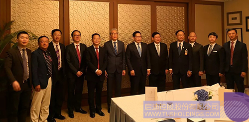 又讯:同日,王济武董事长在结束与颂奇副总理的会谈后,率团到访泰中文化经济协会。泰国前国会主席、前副总理、泰中文化经济协会会长Dr.Bhokin Bhalakula热情接待了王济武董事长一行。