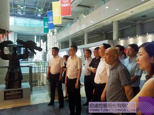 乐动在线控股党委书记、副董事长李志强(左二)率团参观中国运载火箭技术研究院